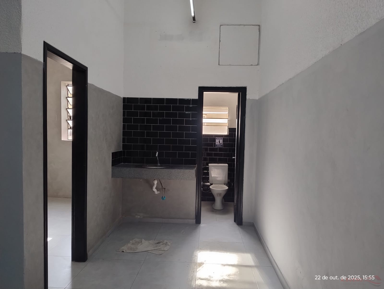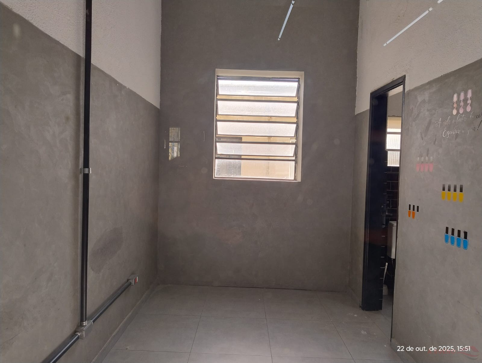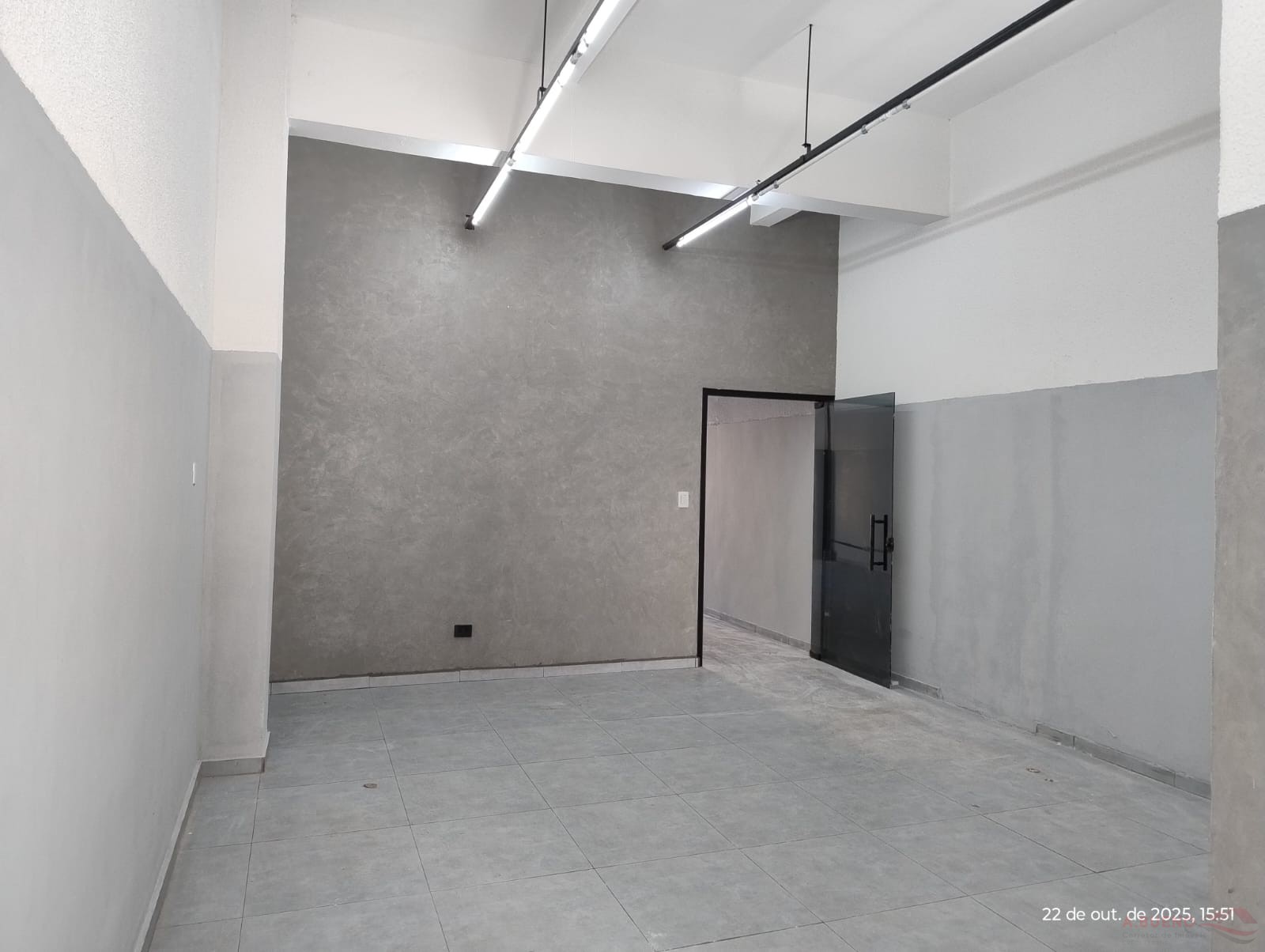 Salão comercial com 60 m², 01 Escritório, 02 W/C, pia, Porta de vidro.